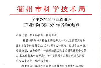 榜上有名丨貝德泵業市級工程技術研究開發中心進入衢州市市級工程技術研究開發中心名單