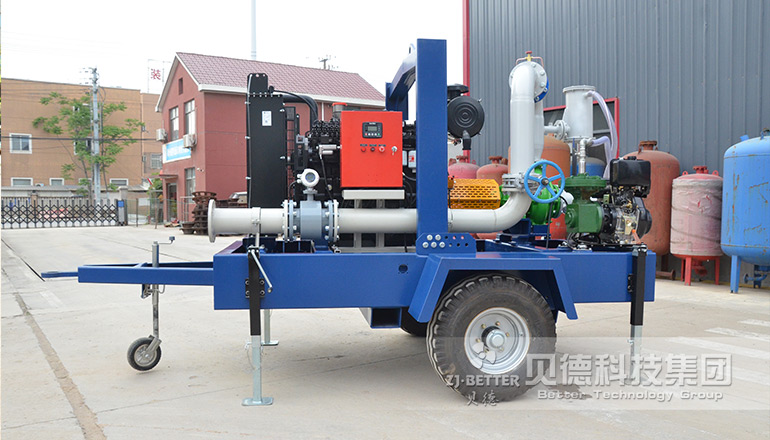 拖車式移動泵車集混流泵和無堵塞排污于一體,采用柴油機驅動軸向回流外混式,并通過泵體、葉輪流道的獨特設計,使用時不需要安裝底閥和灌引水。主要用于農田灌溉、農村灌溉、農業灌溉、排水泵站、雨水泵泵站、排灌排澇、防洪防汛、防洪排澇、抗旱減災等。