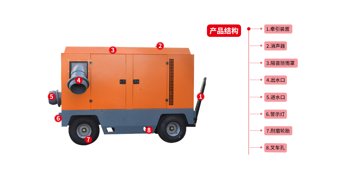移動防汛搶險泵車具有高吸程和自吸快的特點,不需要引灌水就能自吸啟動和控制運行,配備動力即可作為移動泵站使用。采用真空泵可使主泵正常工作后停止運行,或者保持一直運行。此外,泵的自吸能力超強,大大減少自吸時間,有效提高工作效率,提高吸程30%以上,具有耐久性、穩定性、實用性和經濟性等多種優點。移動防汛搶險泵車大流量混流型移動泵車集混流泵和無堵塞排污于一體,采用柴油機驅動軸向回流外混式,并通過泵體、葉輪流道的獨特設計,使用時不需要安裝底閥和灌引水。主要用于農田灌溉、農村灌溉、農業灌溉、排水泵站、雨水泵泵站、排灌排澇、防洪防汛、防洪排澇、抗旱減災等。大流量混流型移動泵車具有很好的自吸性能;而且機動性強,外置拖車裝置,可裝置與汽車尾部進行拖拽;本泵全自動操作無須人員值守,全系標配一鍵啟動。本泵車是防汛抗旱產品的較佳選擇,產品技術達到國際水平,具有廣泛的應用市場和發展前景。拖車式移動排澇泵車具有效率高、性能范圍廣、運行安全平穩、噪音低、壽命長、安裝維修方便等特點。供輸送清水或物理化學性質類似于水的其它液體,也可以通過改變泵過流部件材質、密封形式和增加冷卻系統用于輸送熱水、油類、腐蝕性或含磨粒的介質。